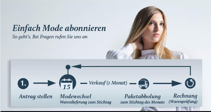 Und so funktioniert es Nachdem wir die anliegende Anmeldung geprüft haben, sie den Vertrag erhalten haben und er unsunterschreiben vorlieget startet die Lieferung. Schritt 1: Lieferung der Ware zu einem festen Stichtag jeden Monats Schritt 2: Verkauf der Ware in Ihrem Geschäft über ca. 4 Wochen inkl. Versandzeiten Schritt 3: Abholung der nicht verkauften Ware und Zahlung des Einkaufspreises der Ware Schritt 4: Rechnung nach Wareneingang und Prüfung